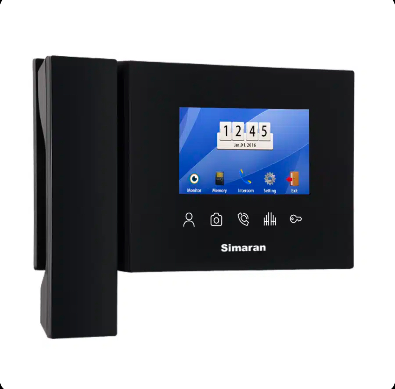 در سـمت چپ این مانیتـور از گوشـی مگنت دار با طـراحی جدید استفاده شده و در وسط صفحـه نمایشـگر 4.3 اینچ به چشم می خورد، استفاده از کلید های لمسی ( TOUCH KEY ) و LED های آبی، زیبایی محصول را دو چندان کرده است، در قسمت پایینی(زیر) مانیتور کلید خاموش و روشن کردن مانیتور و درگاه Micro-SD تعبیه شده است.